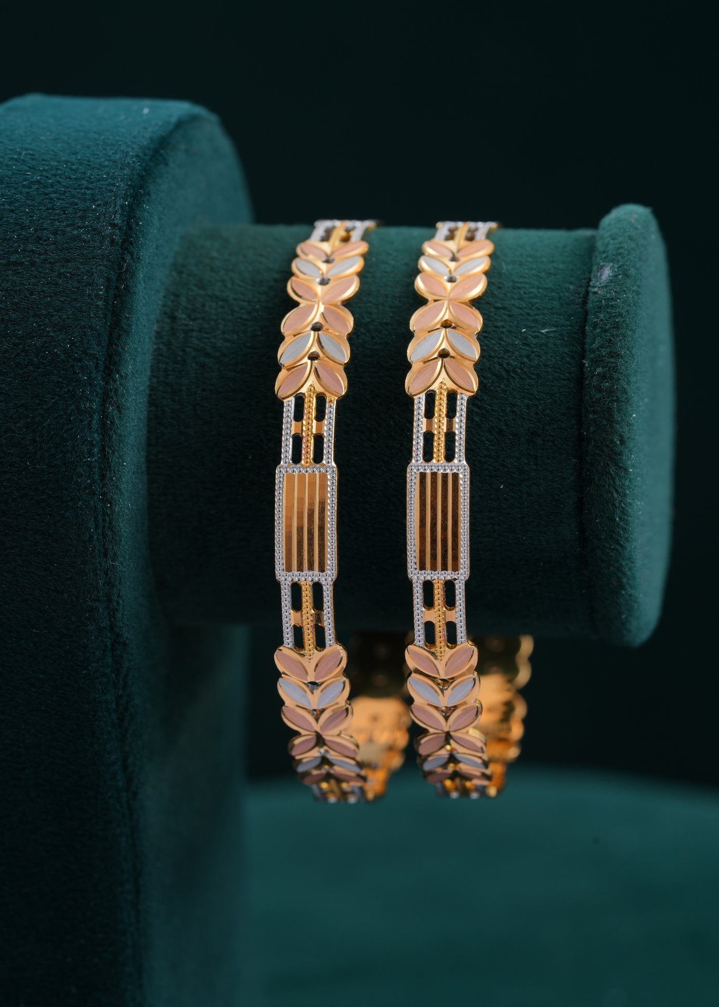 Crafted with expert precision, these Gold Floral Bangles showcase intricate floral motifs that blend timeless elegance with contemporary design. Their refined craftsmanship ensures durability while adding a sophisticated touch to both traditional and modern attire. Perfect for enhancing your collection with a piece that exemplifies artistry and grace.