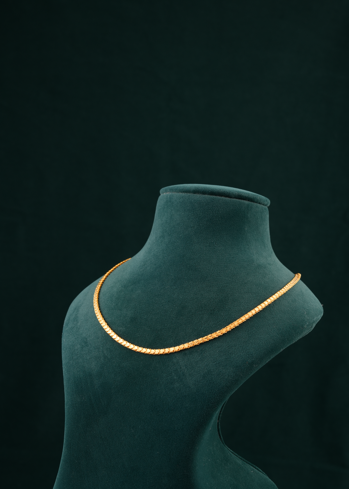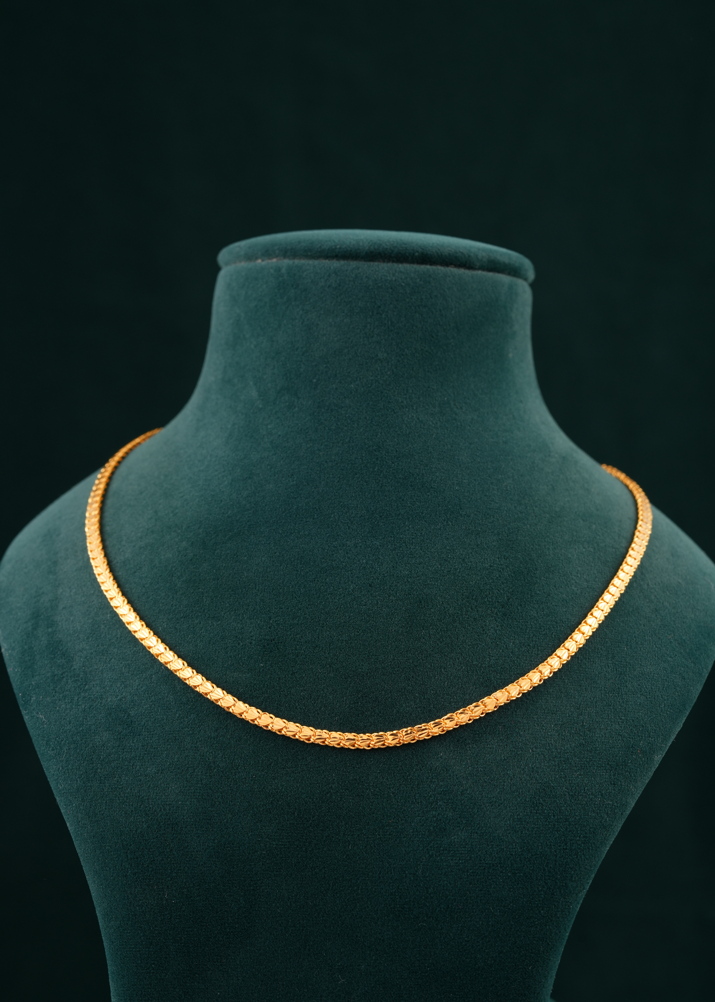 Crafted from 22-karat gold, this short chain combines durability with elegant simplicity. Its refined design makes it an ideal choice for daily wear or as a subtle accent to complement pendants. The shorter length enhances visibility around the neckline, contributing to a polished and professional appearance. Expertly crafted to maintain its shine and strength, this chain offers a reliable and stylish addition to any jewelry collection.