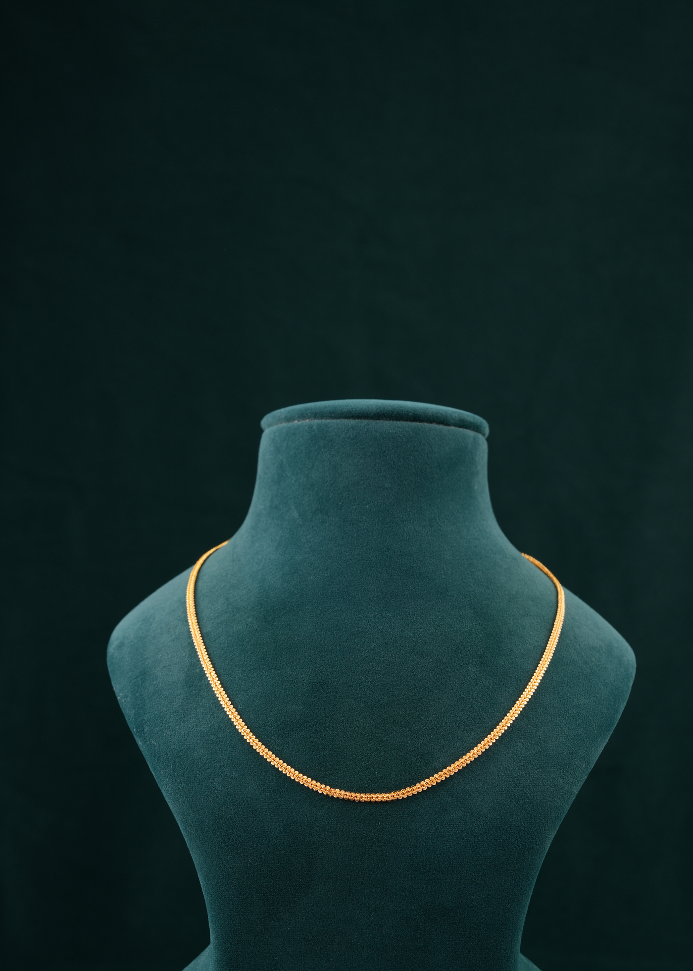 Crafted from authentic 22KT gold, these short chains are designed for daily wear, combining durability with elegance. Their refined length offers a perfect fit for versatile styling, making them an essential accessory that complements both casual and formal attire with understated sophistication.