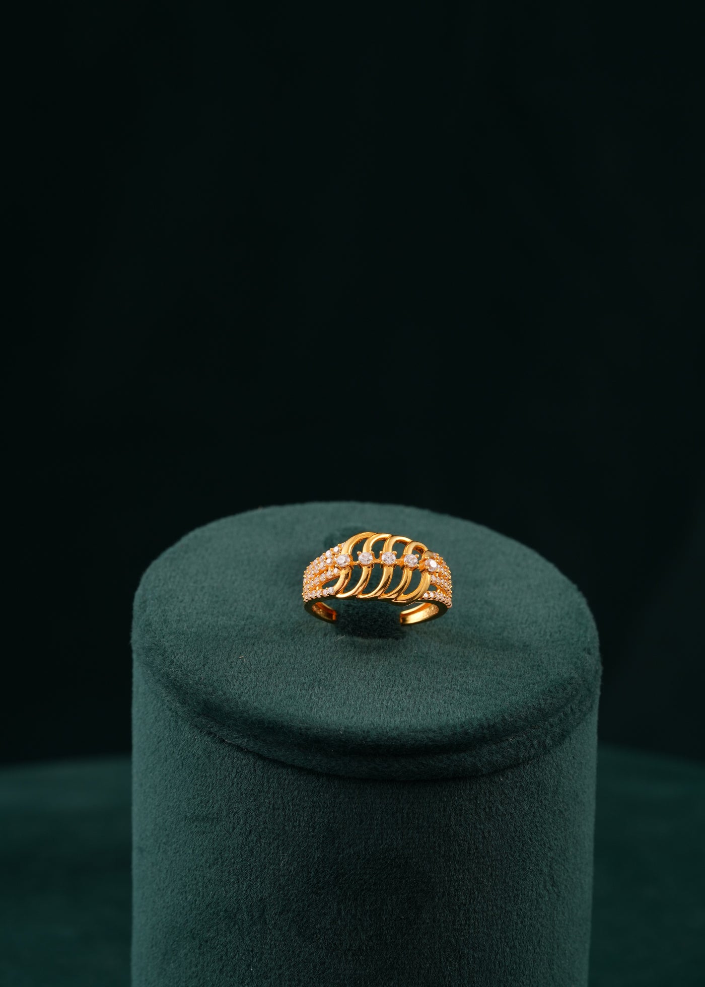 This exquisite 22KT stone ring showcases superior craftsmanship, featuring a rich gold base that highlights the brilliance of carefully selected stones. Designed for durability and elegance, it adds a sophisticated touch to any collection, perfect for those who appreciate timeless fine jewelry. Ideal for special occasions or daily wear, this ring combines traditional artistry with contemporary style.
