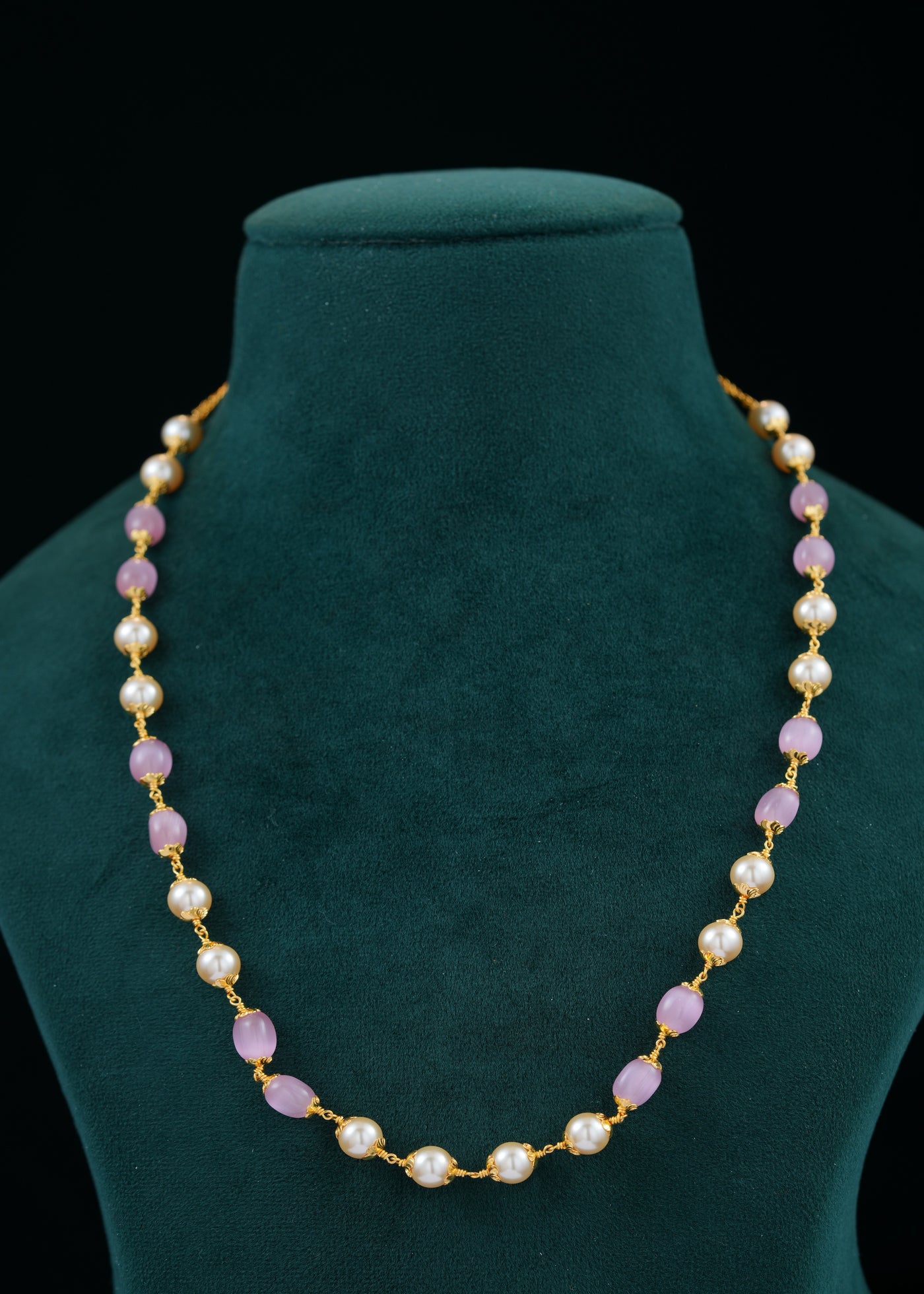This elegant beads chain combines the classic beauty of white pearls with the delicate charm of baby pink beads, creating a refined accessory suitable for both formal occasions and everyday wear. Expertly crafted to ensure lasting quality and a comfortable fit, this chain enhances your ensemble with subtle sophistication and gentle color contrast. Ideal for those seeking a timeless piece with a modern touch.