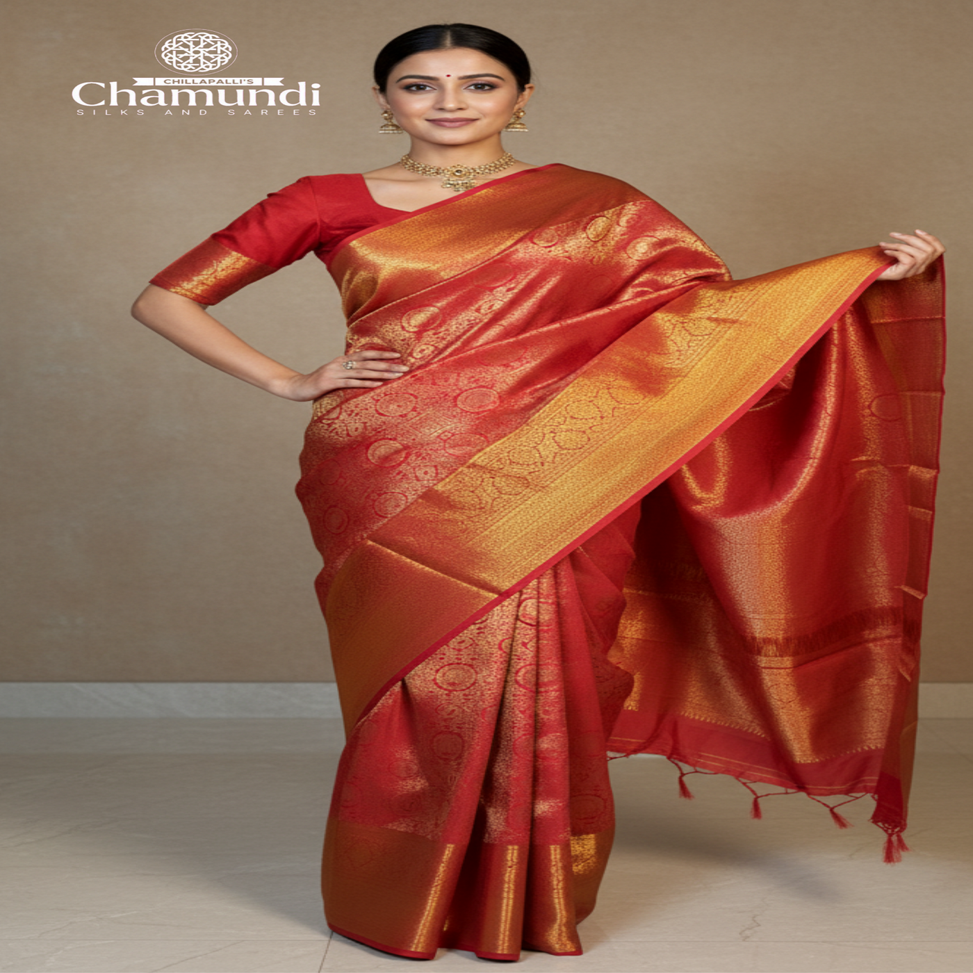 Elevate your ethnic wardrobe with this exquisite Red Kanchi Pattu Saree, a timeless masterpiece of South Indian weaving tradition. Crafted from pure silk with the signature Kanchi weave, this saree showcases rich crimson hues that radiate elegance and sophistication. The intricate zari work and traditional patterns reflect authentic craftsmanship, making it ideal for weddings, festivals, and special occasions. The luxurious drape and lustrous finish ensure you stand out with grace and poise. A versatile investment piece that transcends seasons and trends, perfect for the discerning woman who appreciates heritage and quality.